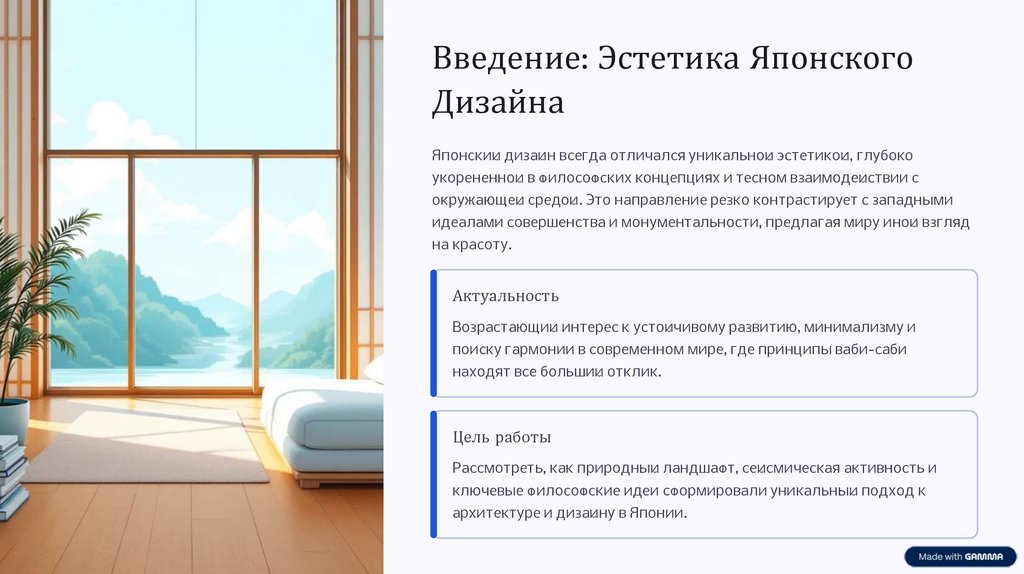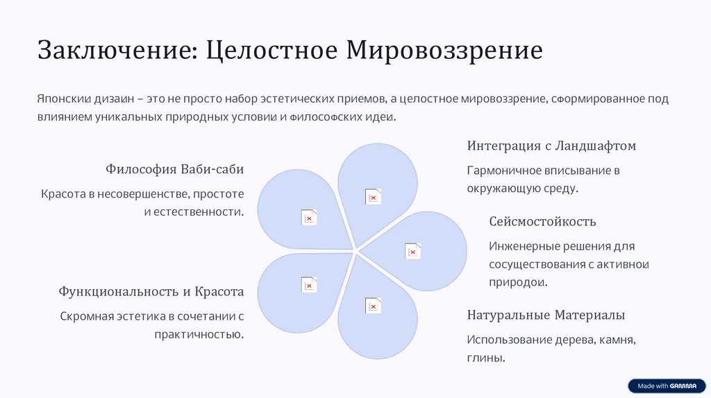 Заключение: Целостное МировоззрениеЯпонский дизайн — это не просто набор эстетических приемов, а целостное мировоззрение, сформированное под