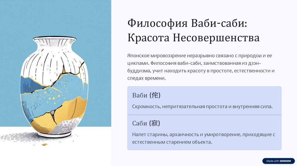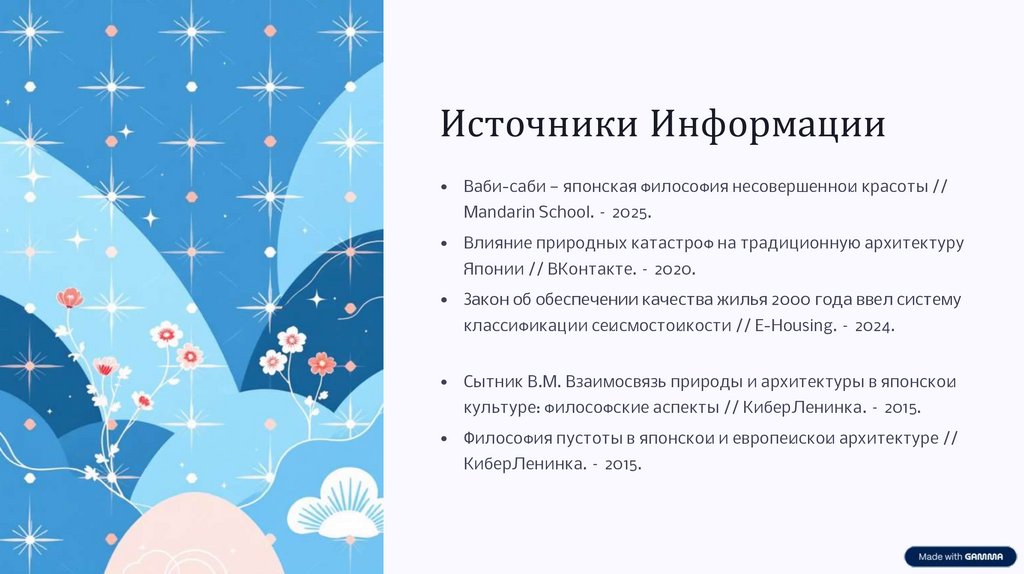 Источники Информации• Ваби-саби — японская философия несовершенной красоты //
