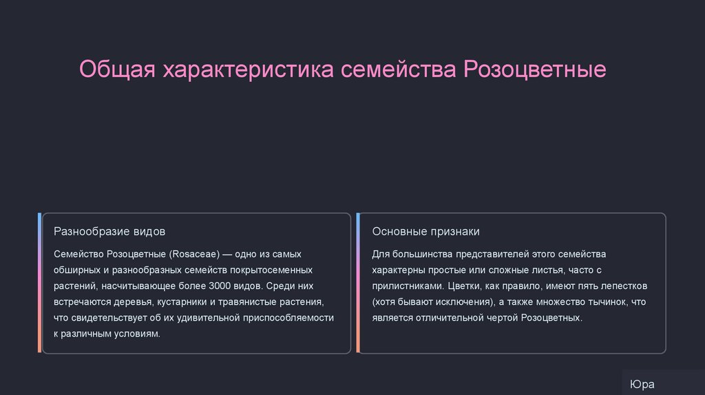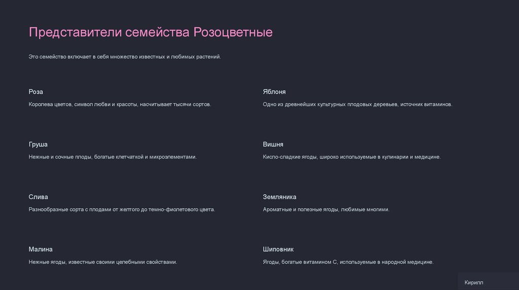 Общая характеристика семейства РозоцветныеРазнообразие видов