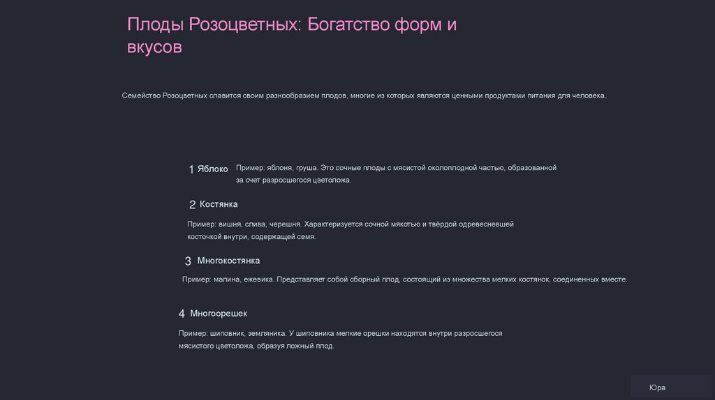 Семейство Розоцветных славится своим разнообразием плодов, многие из которых являются ценными продуктами питания для человека.