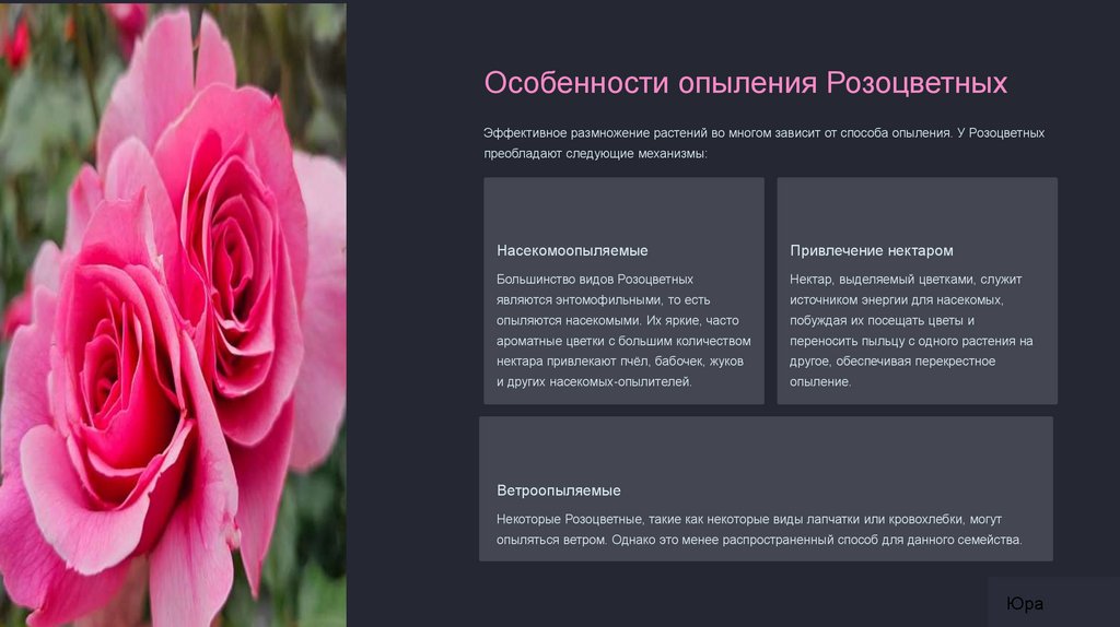 Особенности опыления РозоцветныхЭффективное размножение растений во многом зависит от способа опыления. У Розоцветных