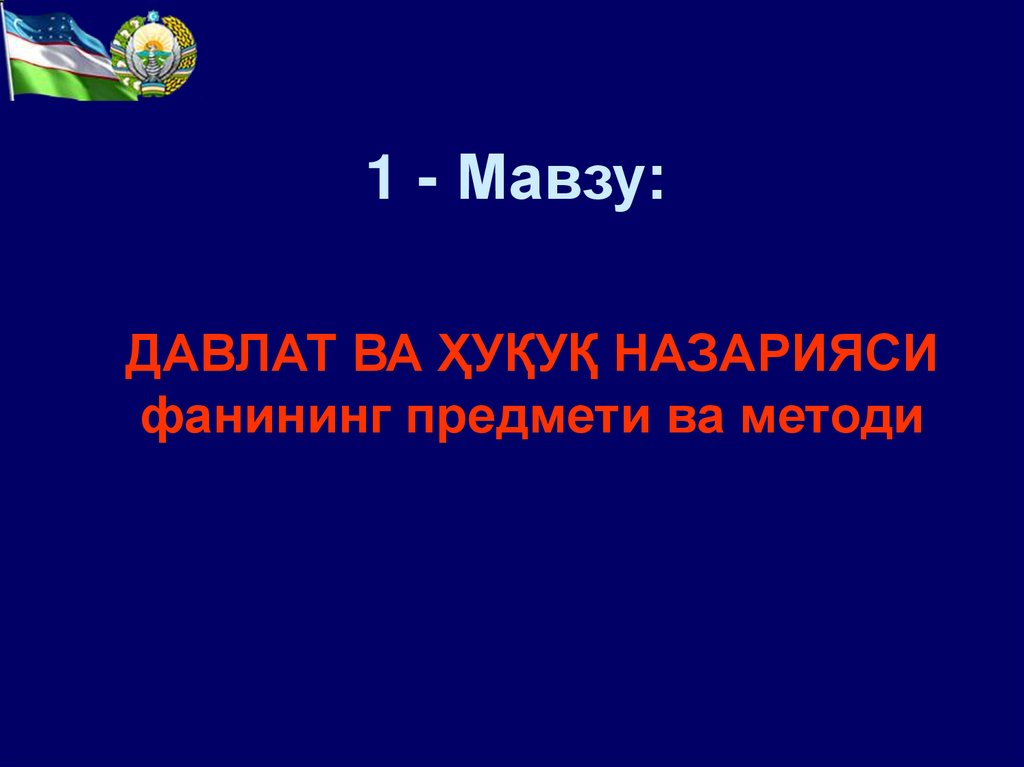 1 - Мавзу:ДАВЛАТ ВА ҲУҚУҚ НАЗАРИЯСИ