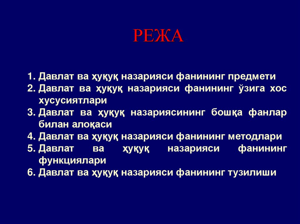 РЕЖА1. Давлат ва ҳуқуқ назарияси фанининг предмети