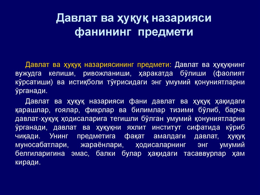 Давлат ва ҳуқуқ назариясифанининг предмети