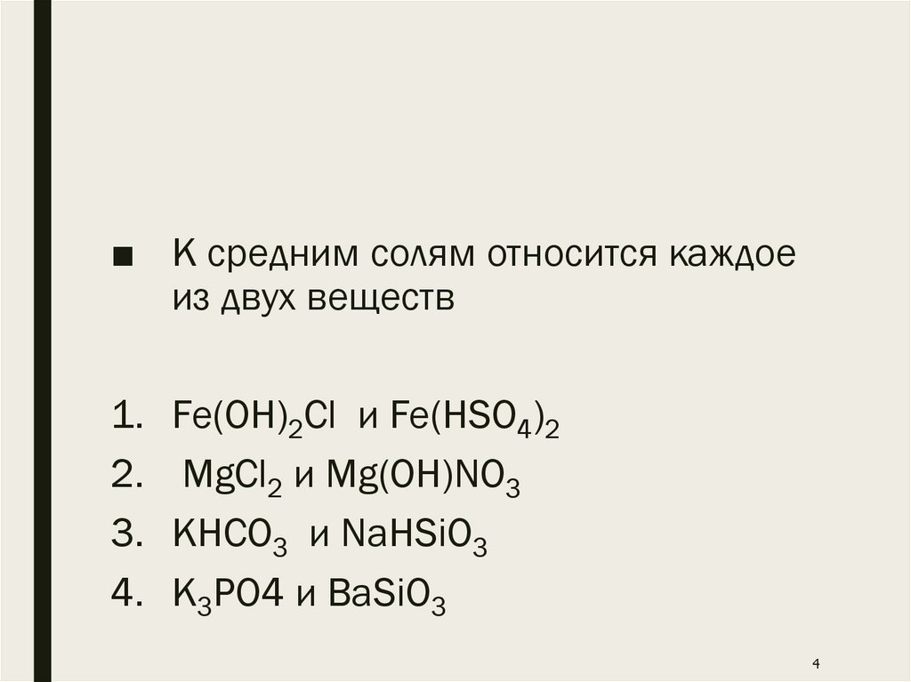 ■ К средним солям относится каждоеиз двух веществ