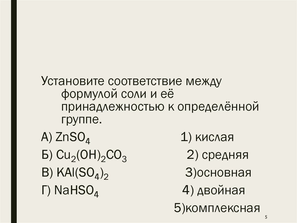 Установите соответствие междуформулой соли и её