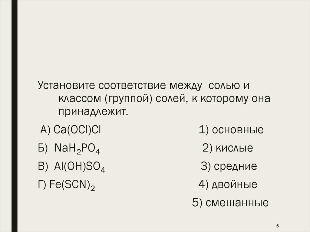 Установите соответствие между солью иклассом (группой) солей, к которому она