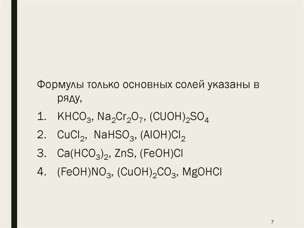 Формулы только основных солей указаны вряду,
