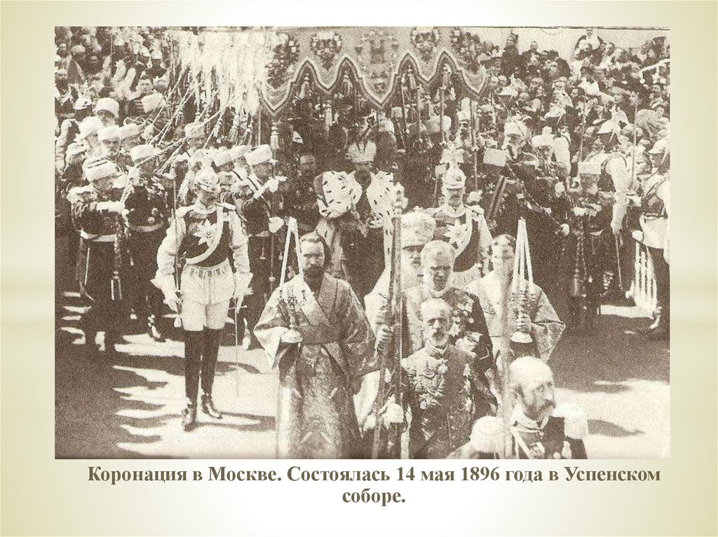 Коронация в Москве. Состоялась 14 мая 1896 года в Успенскомсоборе.