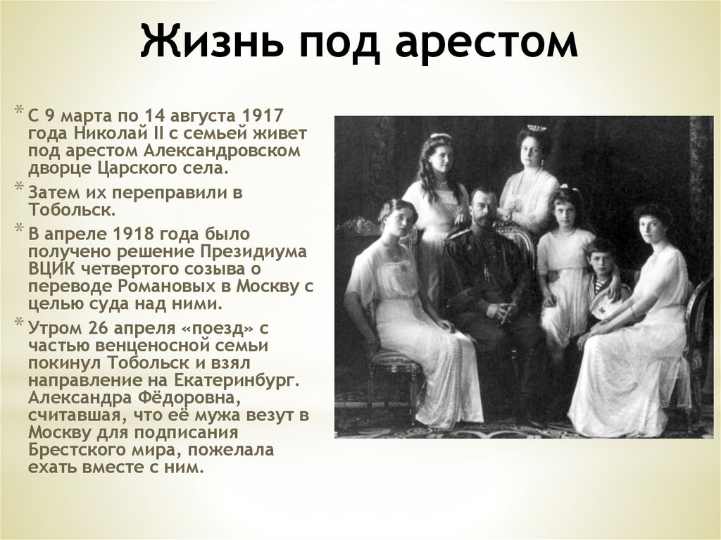 Жизнь под арестом* С 9 марта по 14 августа 1917