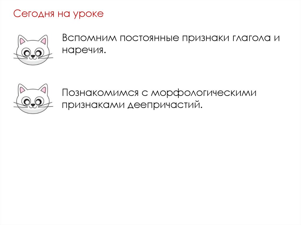 Сегодня на урокеВспомним постоянные признаки глагола и