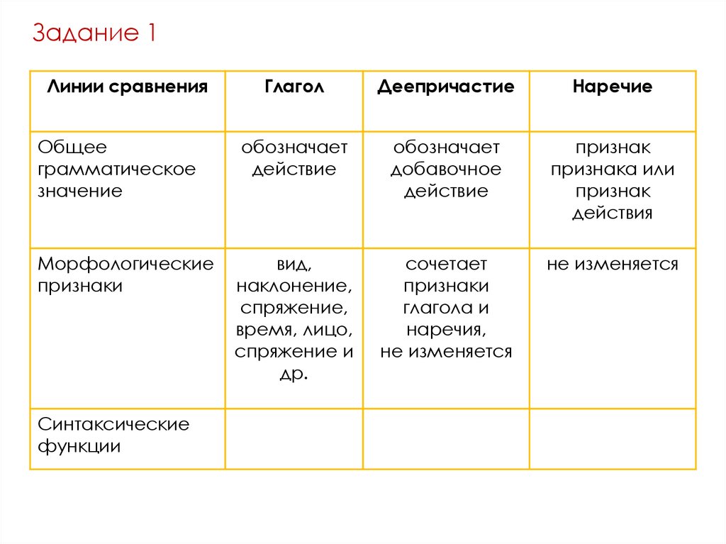 1. Понятие о деепричастии. Признаки глагола и наречия в деепричастии.