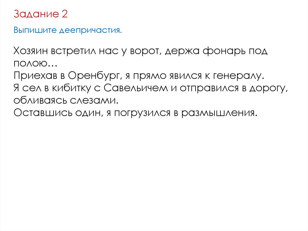 Задание 2Выпишите деепричастия.
