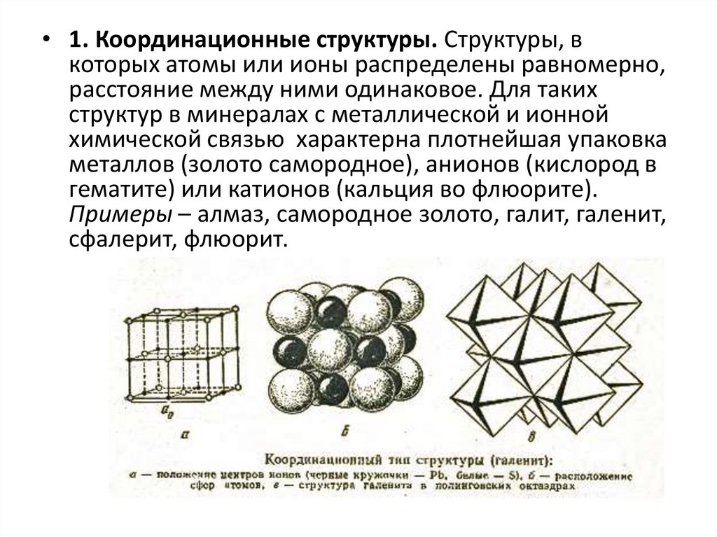 • 1. Координационные структуры. Структуры, вкоторых атомы или ионы распределены равномерно,
