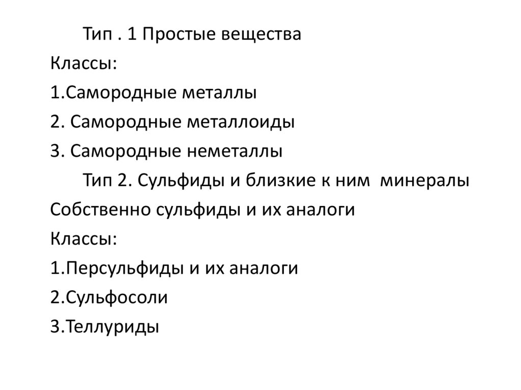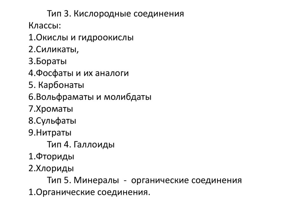 Типы минералов (у А.Г. Бетехтина – Раздел, класс, группа)