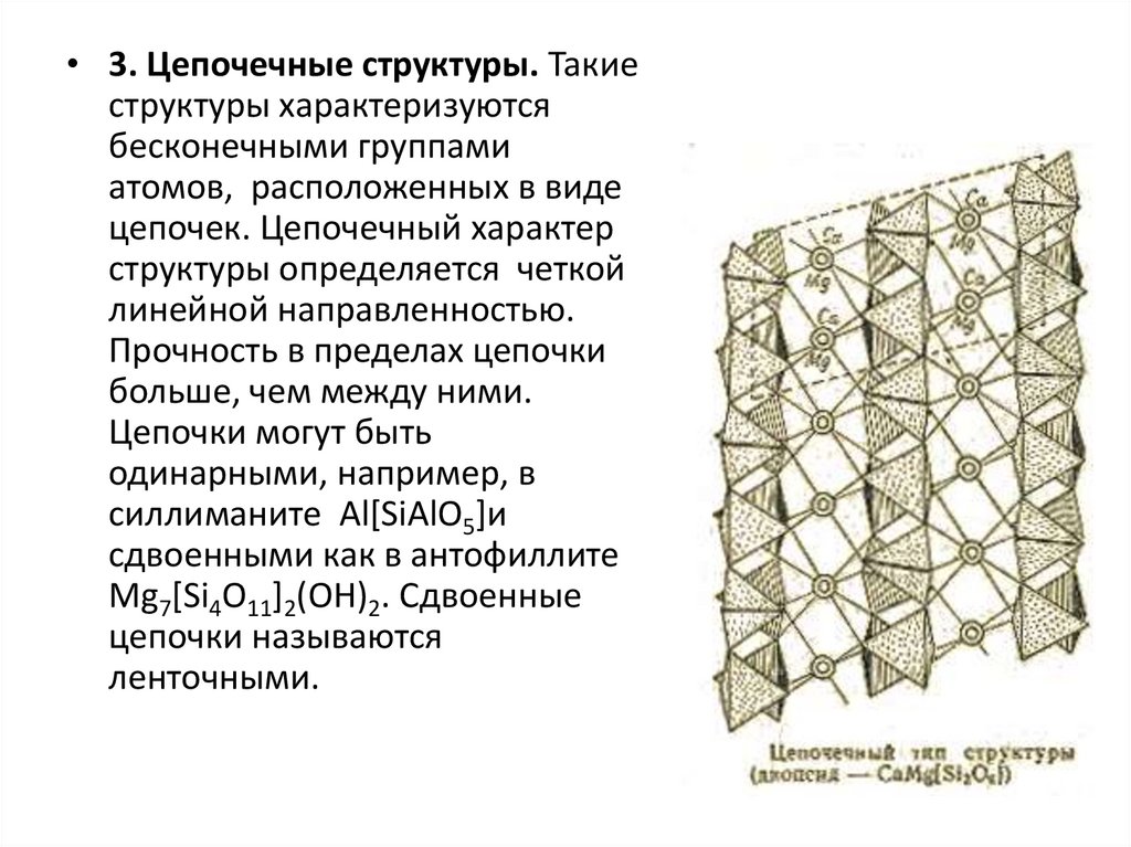 • 3. Цепочечные структуры. Такиеструктуры характеризуются