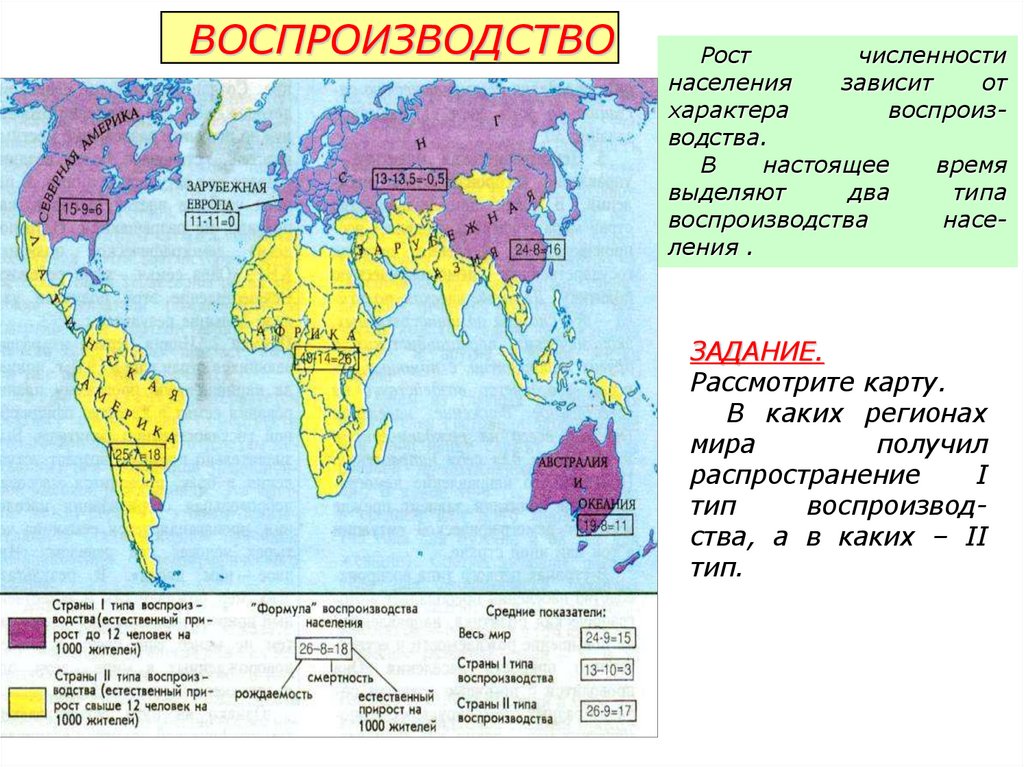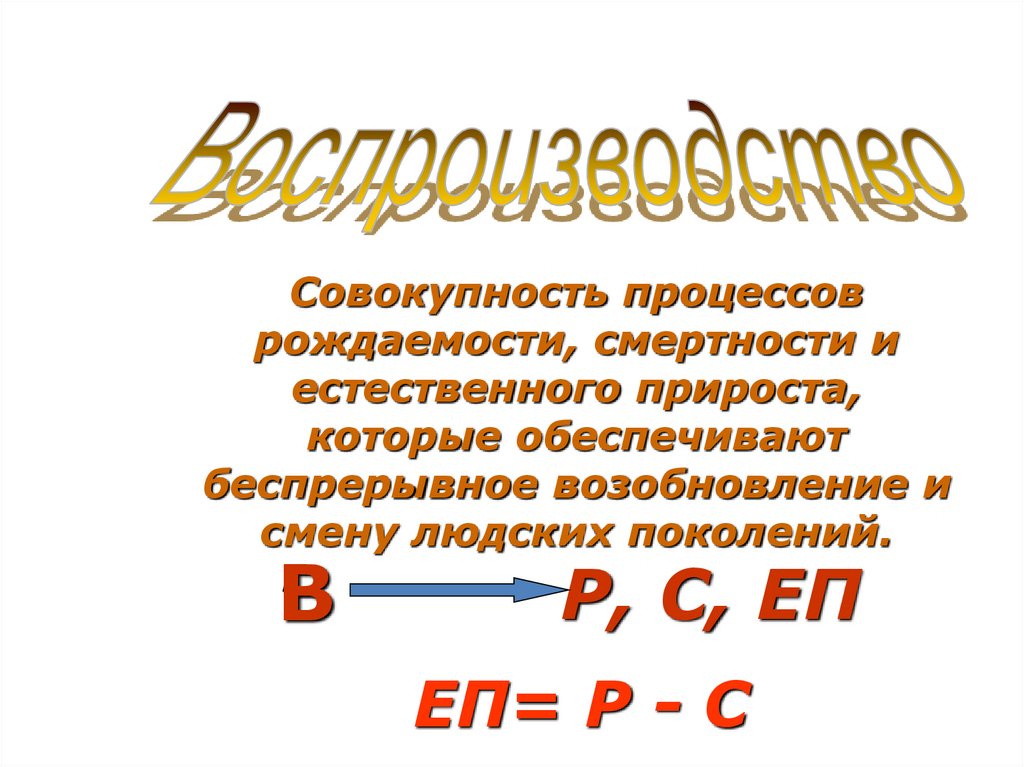 Воспроизводство - это совокупность процессов рождаем ости, смертности и
