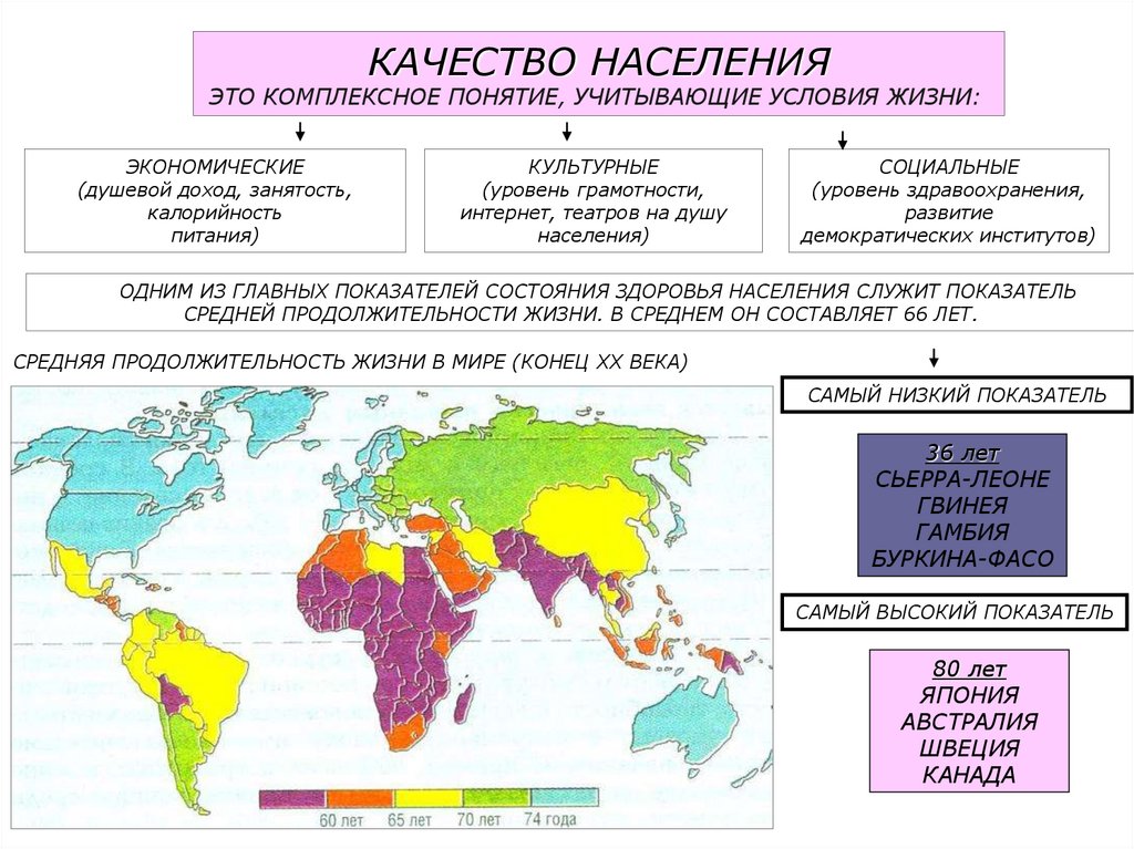 КАЧЕСТВО НАСЕЛЕНИЯЭТО КОМПЛЕКСНОЕ ПОНЯТИЕ, УЧИТЫВАЮЩИЕ УСЛОВИЯ ЖИЗНИ: