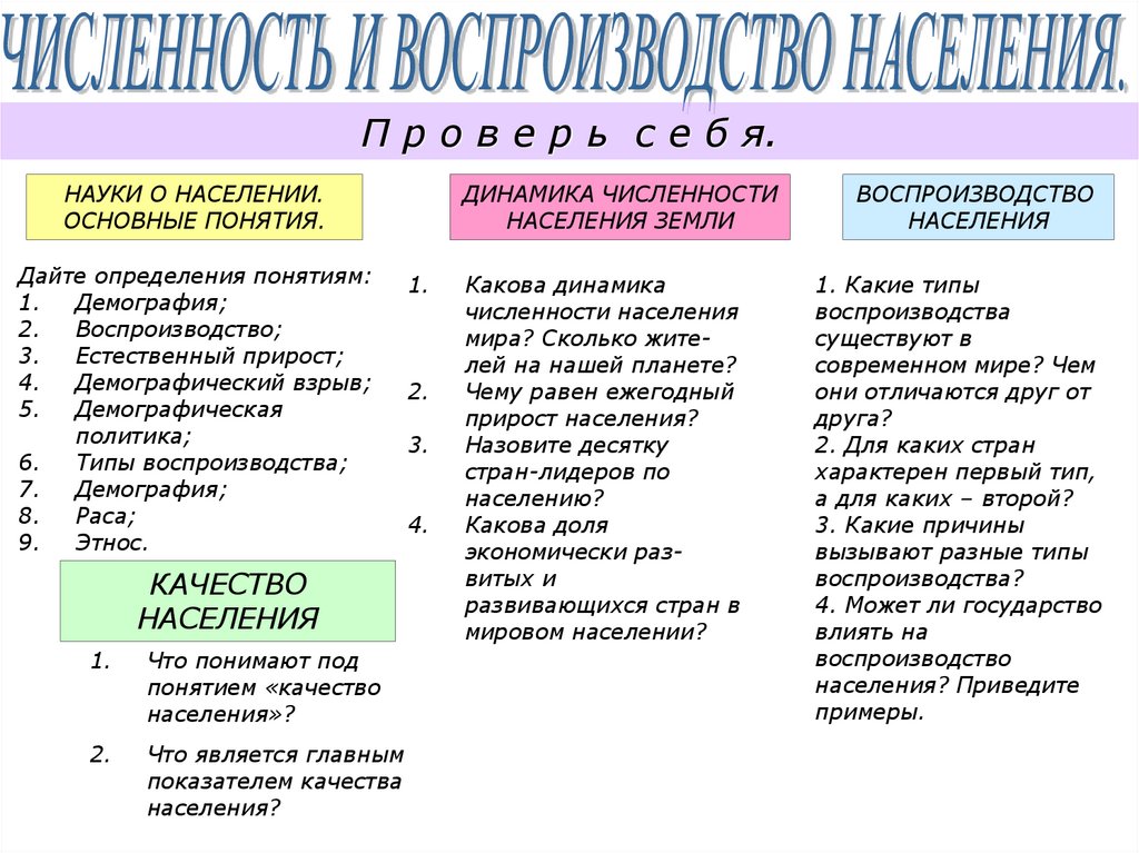 П р о в е р ь с е б я.НАУКИ О НАСЕЛЕНИИ.