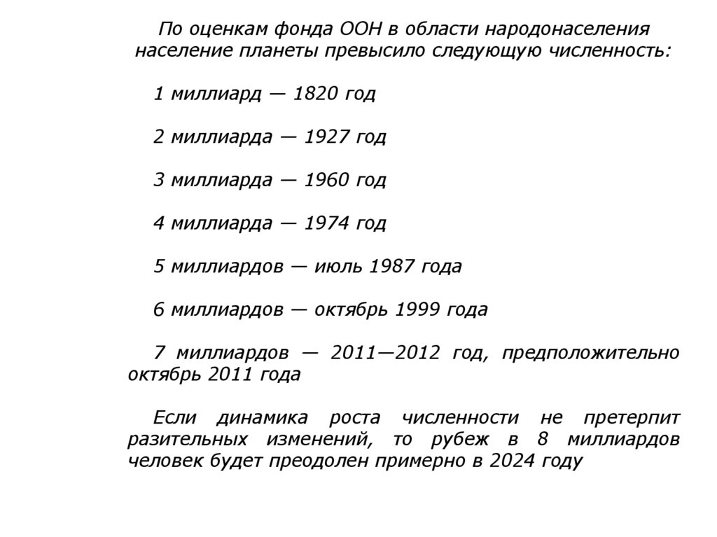 По оценкам фонда ООН в области народонаселениянаселение планеты превысило следующую численность: