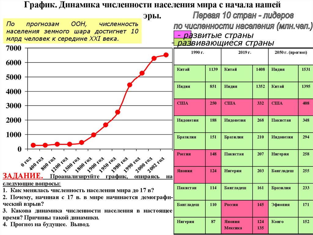 График. Динамика численности населения мира с начала нашейэры.