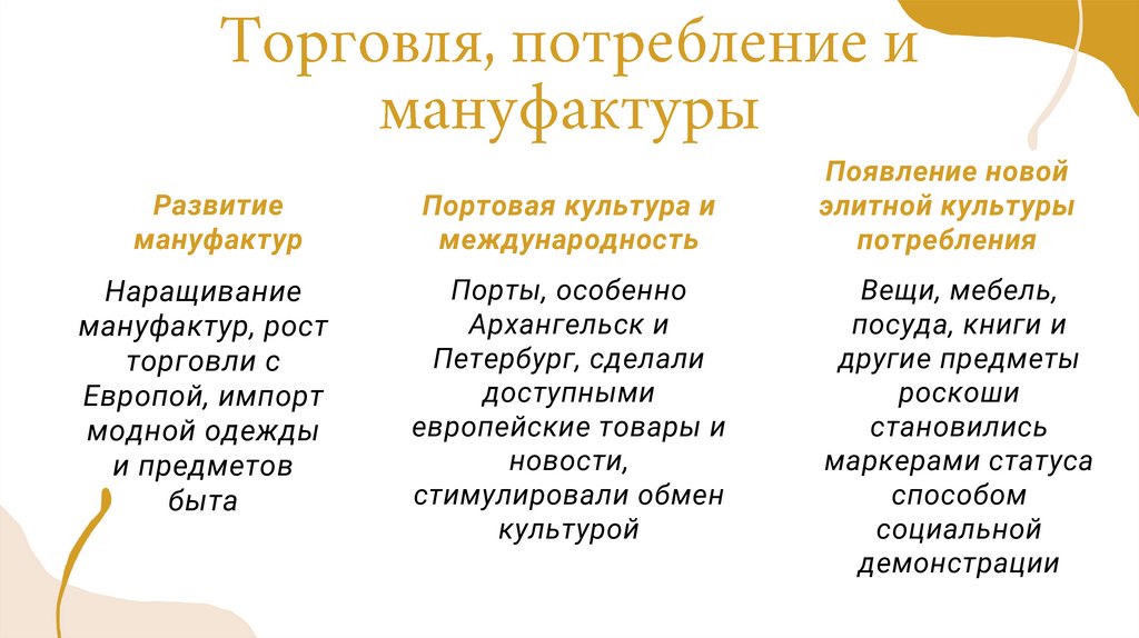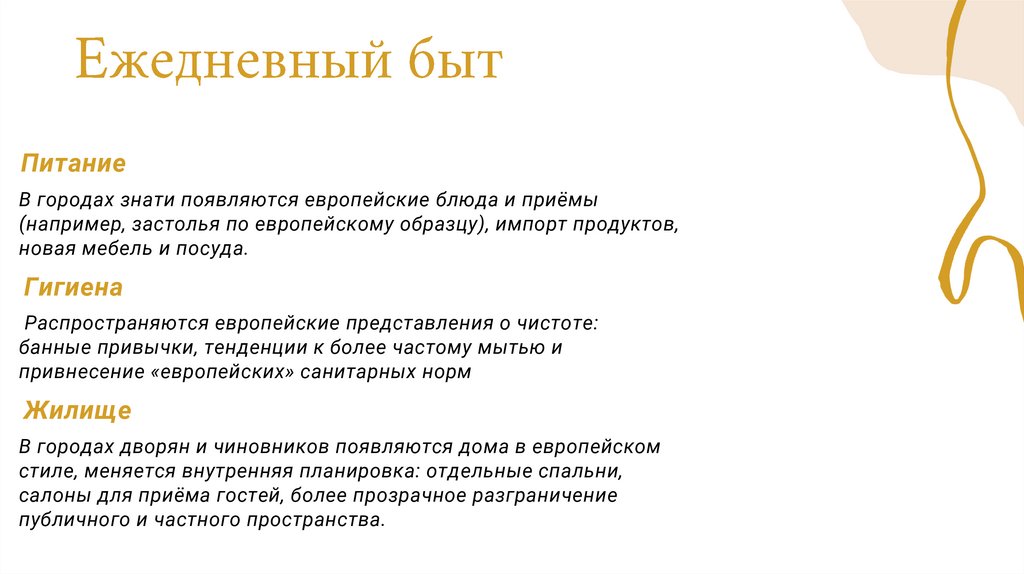 ПитаниеВ городах знати появляются европейские блюда и приёмы