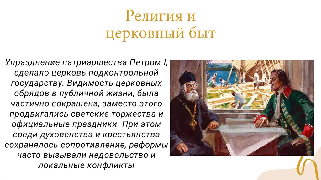Упразднение патриаршества Петром I,сделало церковь подконтрольной