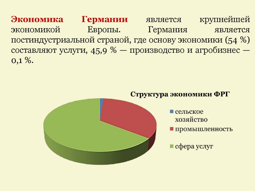 4. В ФРГ— постиндустриальная экономика. Какая часть ВВП принадлежит