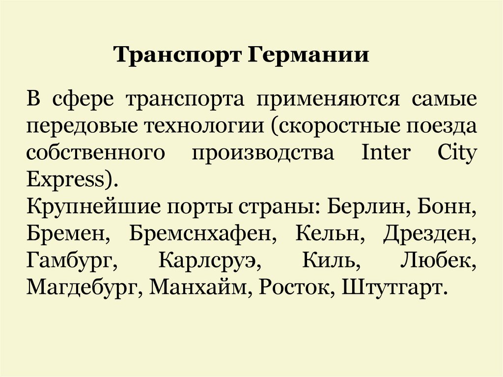 Транспорт ГерманииВ сфере транспорта применяются самые