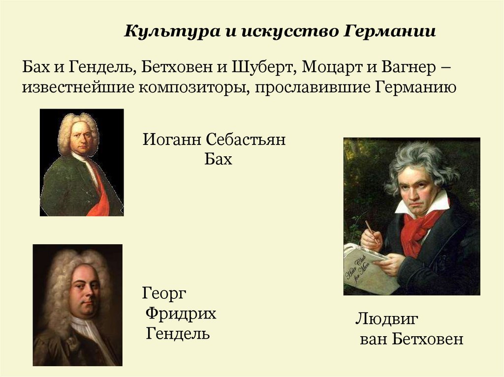 Культура и искусство ГерманииБах и Гендель, Бетховен и Шуберт, Моцарт и Вагнер –