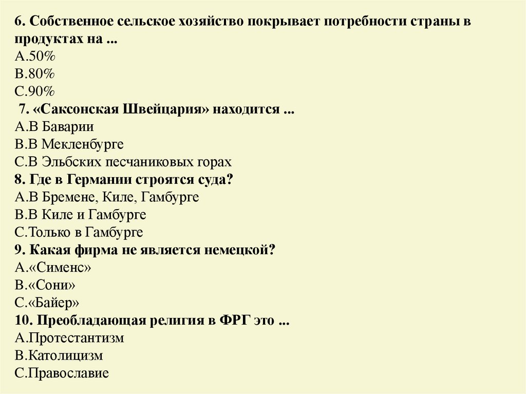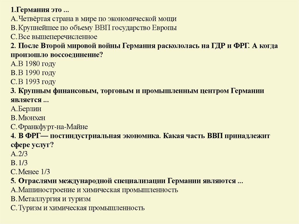 1.Германия это ...A.Четвёртая страна в мире по экономической мощи