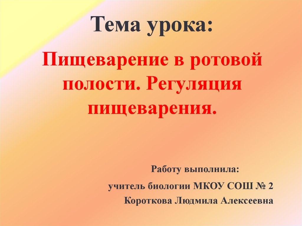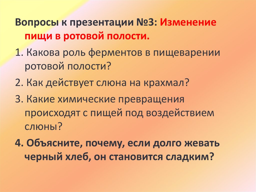 Вопросы к презентации №3: Изменениепищи в ротовой полости.