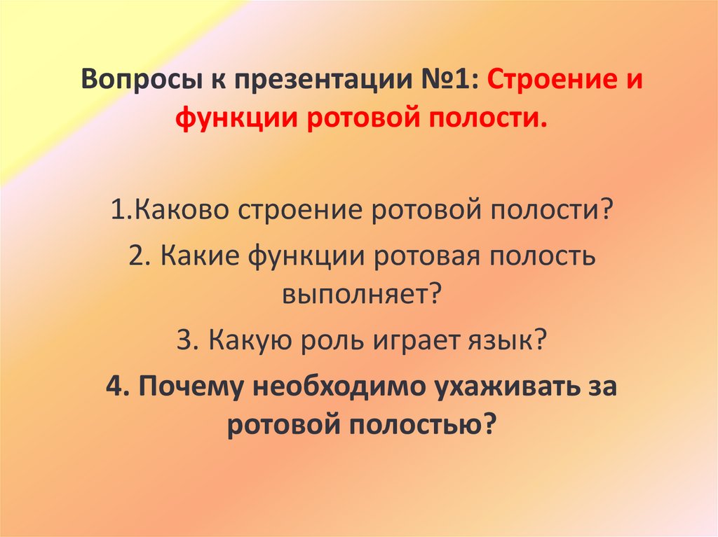 Вопросы к презентации №1: Строение ифункции ротовой полости.
