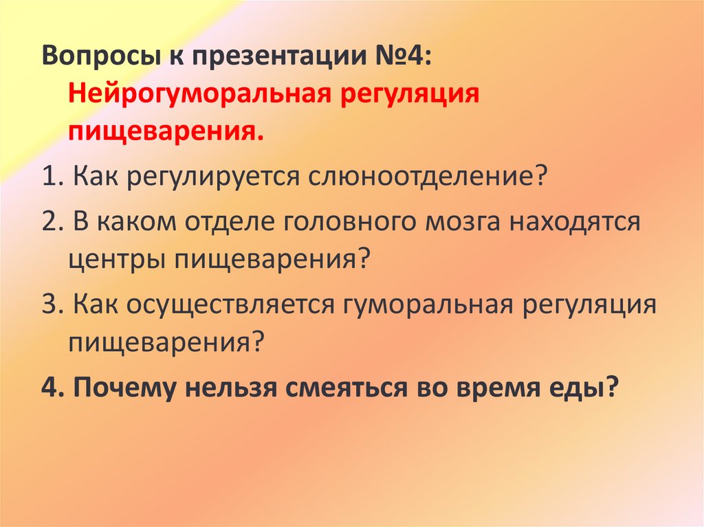 Вопросы к презентации №4:Нейрогуморальная регуляция