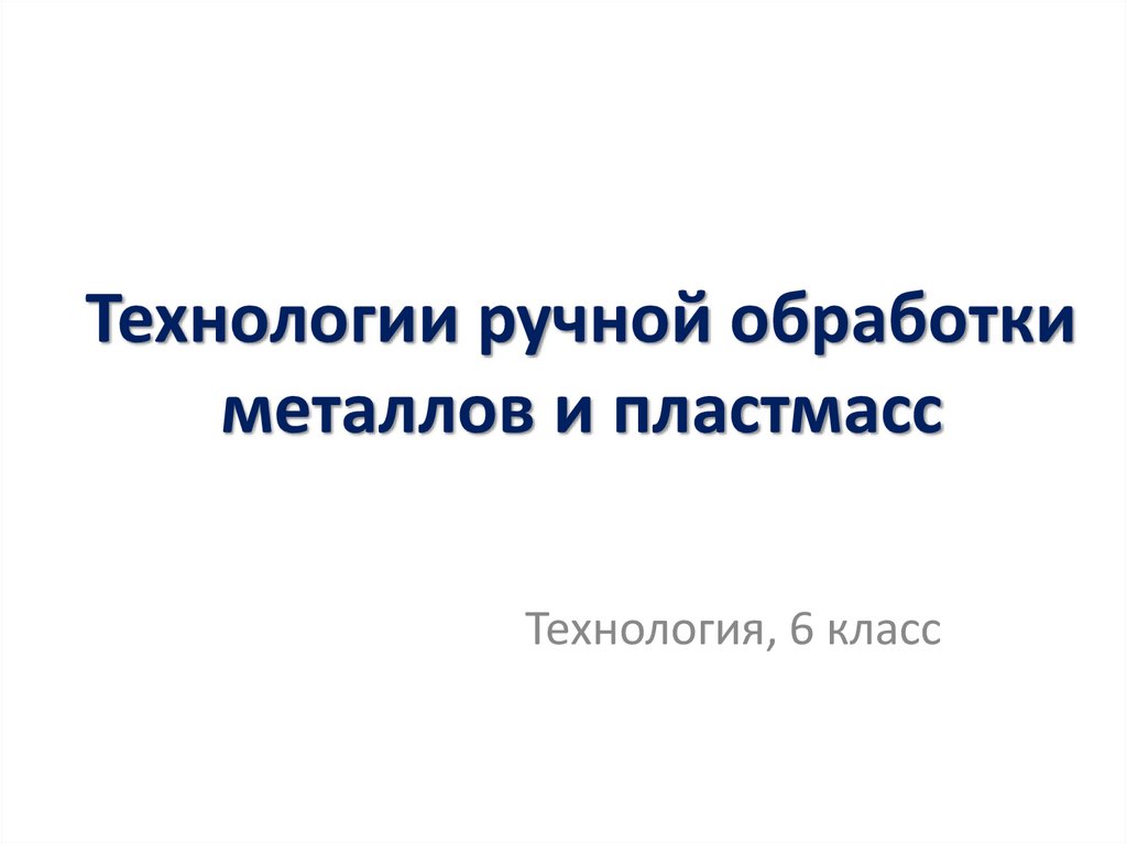 • Технологии ручной обработки металлов ипластмасс ручными инструментами