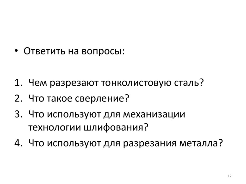 • Ответить на вопросы:1. Чем разрезают тонколистовую сталь?