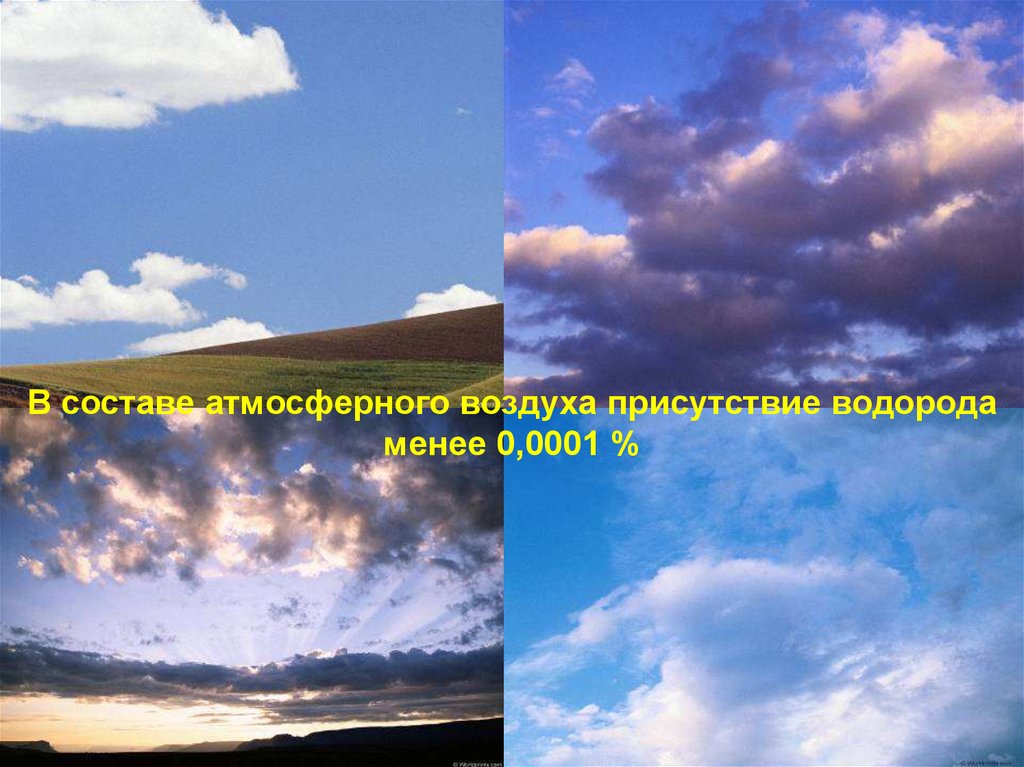 В составе атмосферного воздуха присутствие водородаменее 0,0001 %