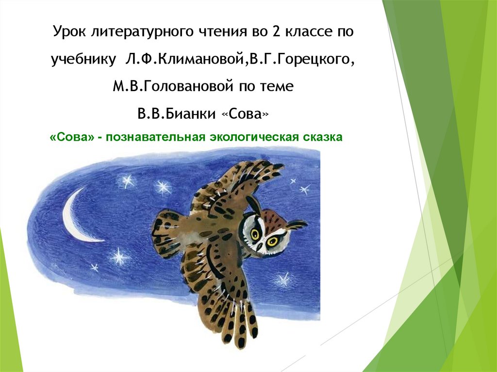 1. Урок литературного чтения во 2 классе по учебнику Л.Ф.Климановой,В.Г.Горецкого, М.В.Головановой по теме В.В.Бианки «Сова»