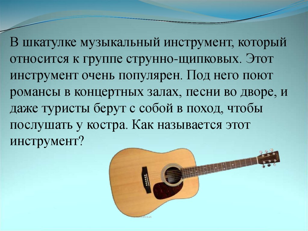 В шкатулке музыкальный инструмент, которыйотносится к группе струнно-щипковых. Этот