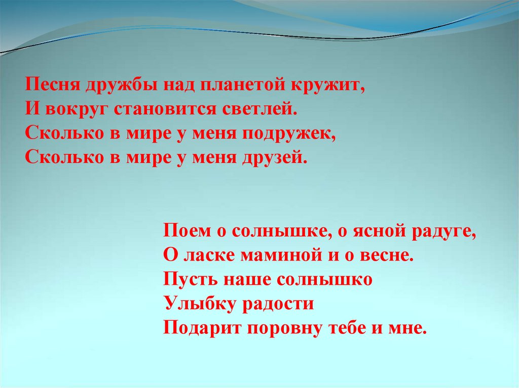 Песня дружбы над планетой кружит,И вокруг становится светлей.