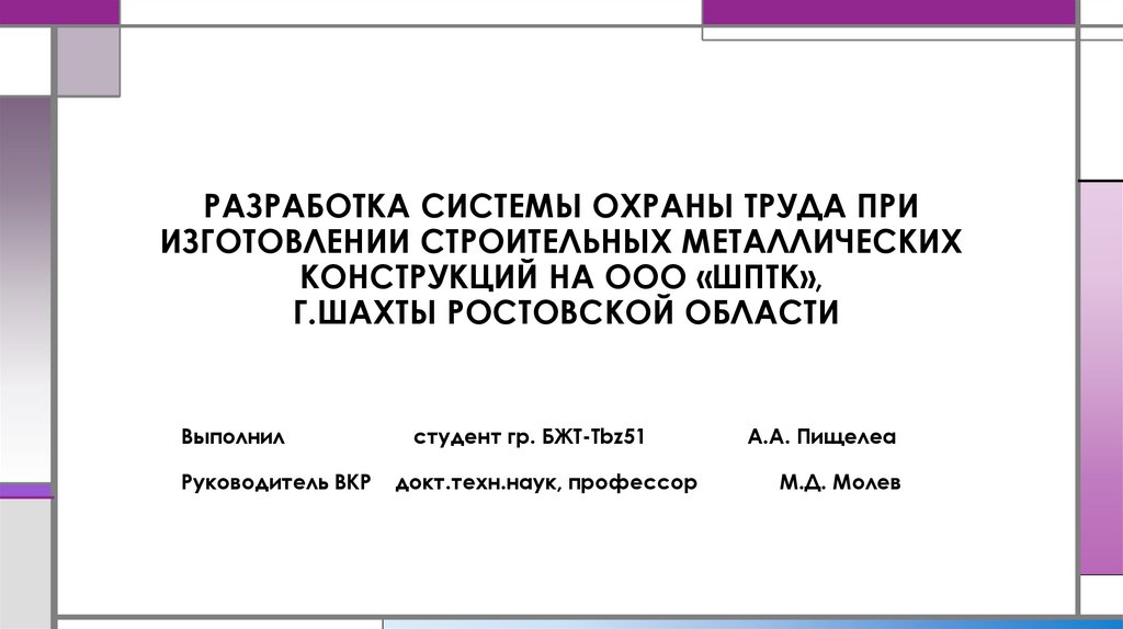 1. РАЗРАБОТКА СИСТЕМЫ ОХРАНЫ ТРУДА ПРИ ИЗГОТОВЛЕНИИ СТРОИТЕЛЬНЫХ МЕТАЛЛИЧЕСКИХ КОНСТРУКЦИЙ НА ООО «ШПТК», Г.ШАХТЫ РОСТОВСКОЙ