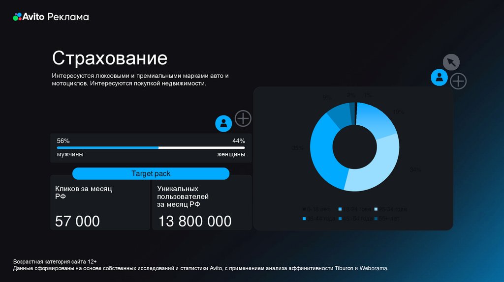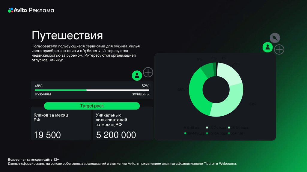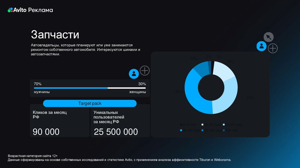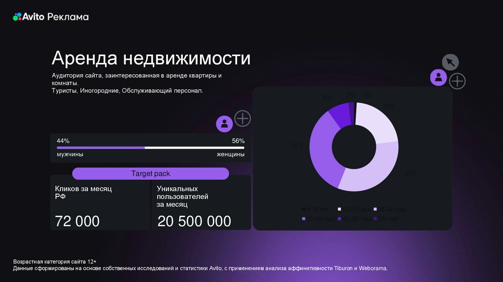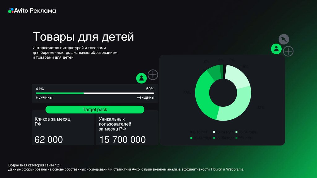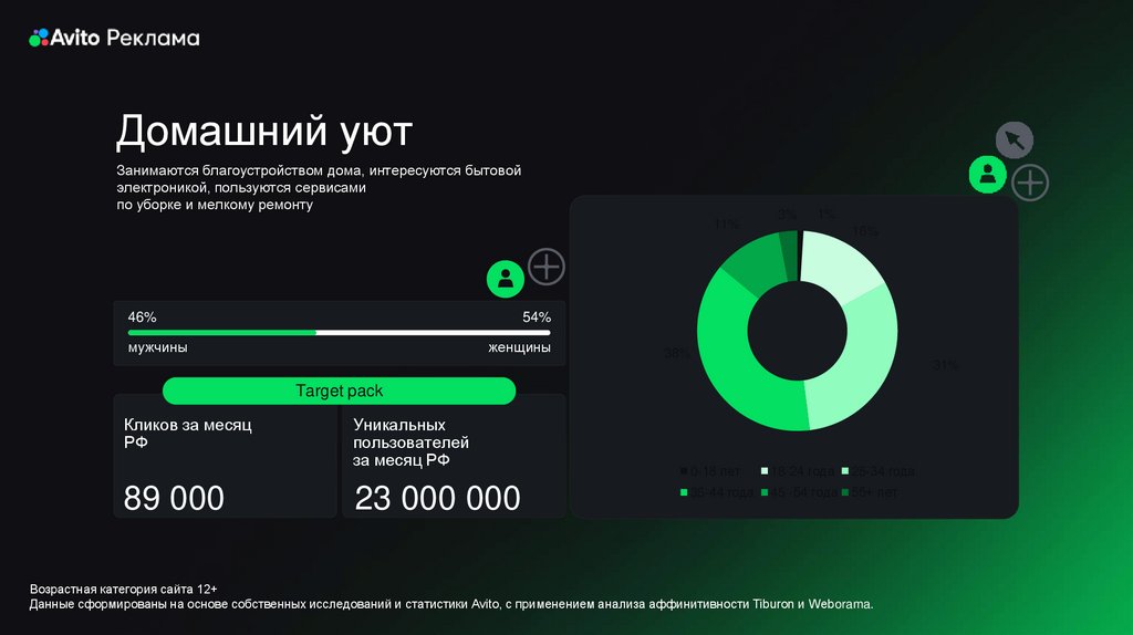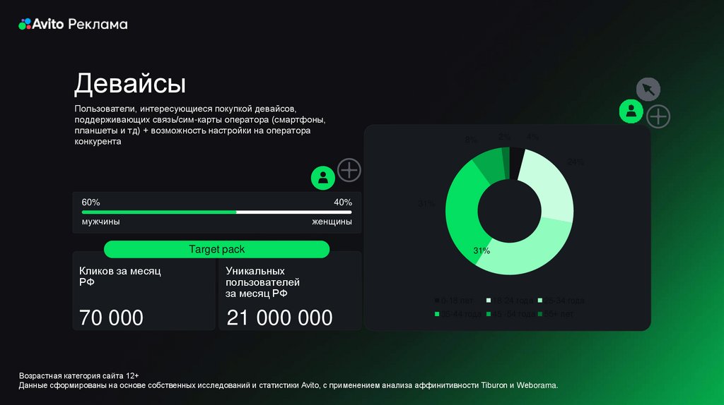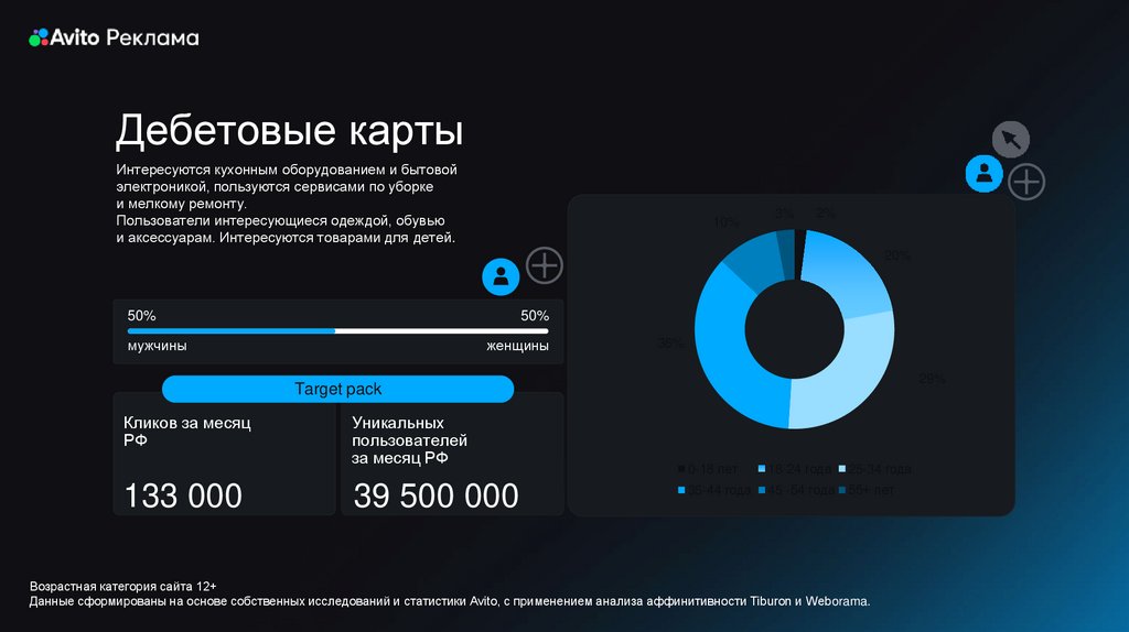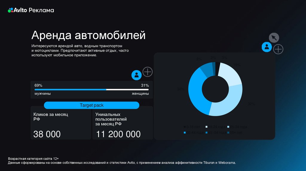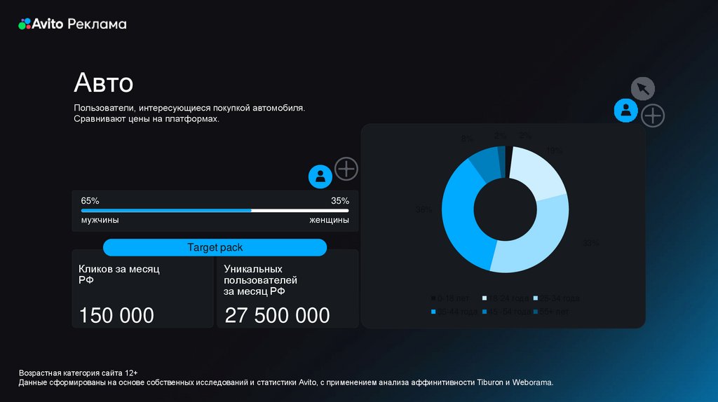 Данные сформированы на основе собственных исследований и статистики Avito, с применением анализа аффинитивности Tiburon и Weborama.