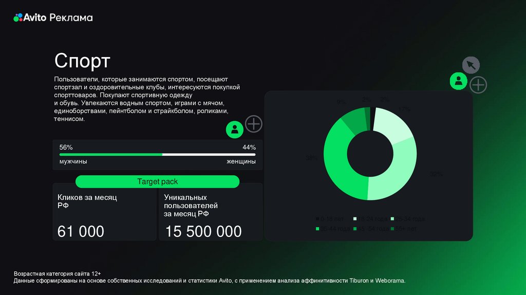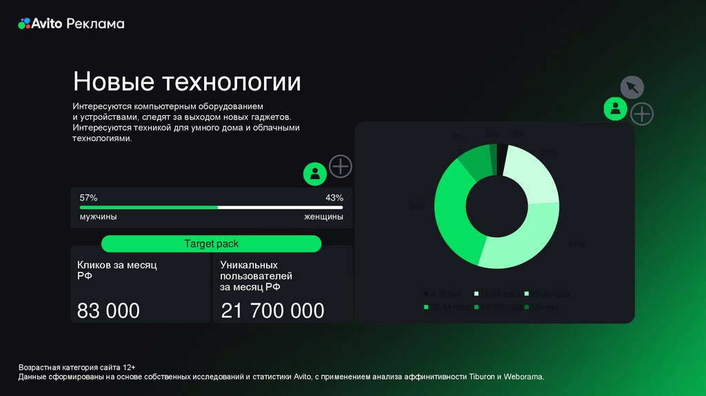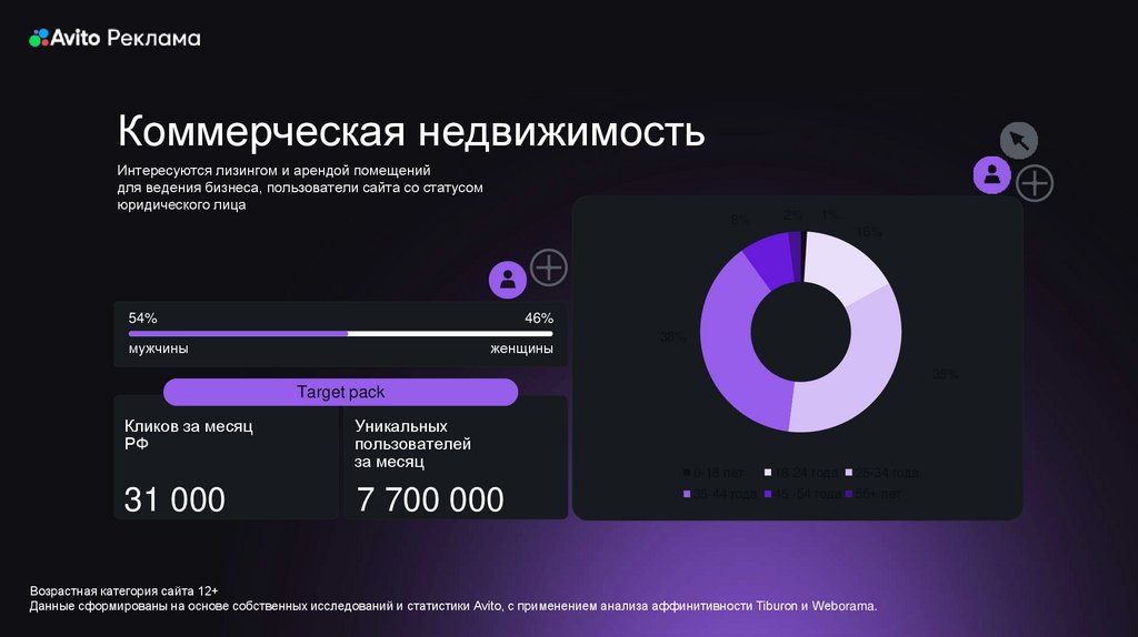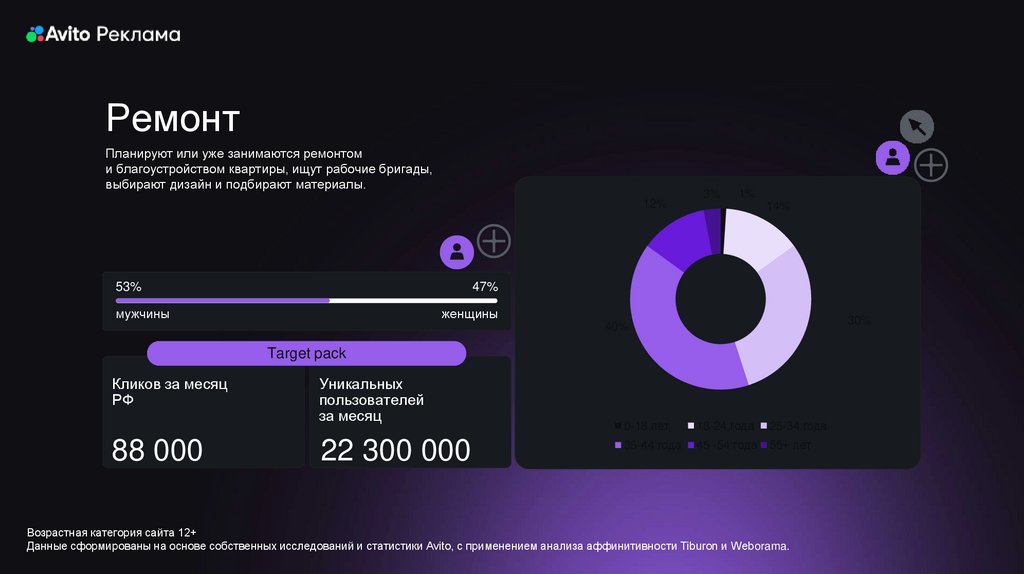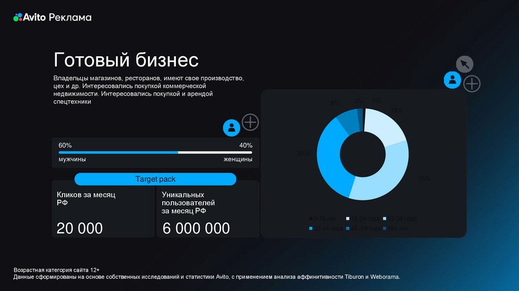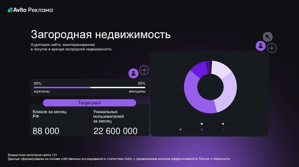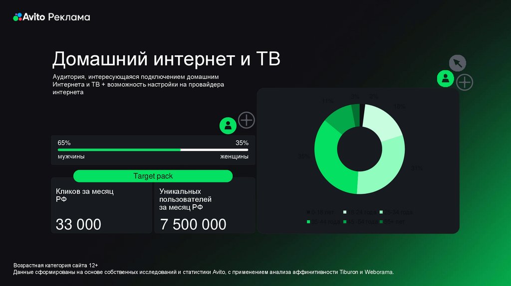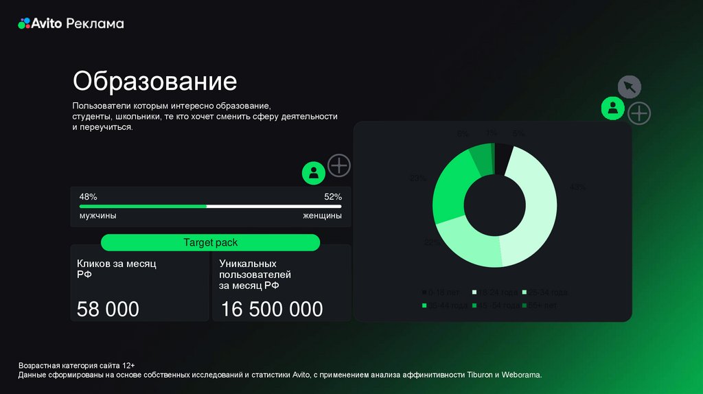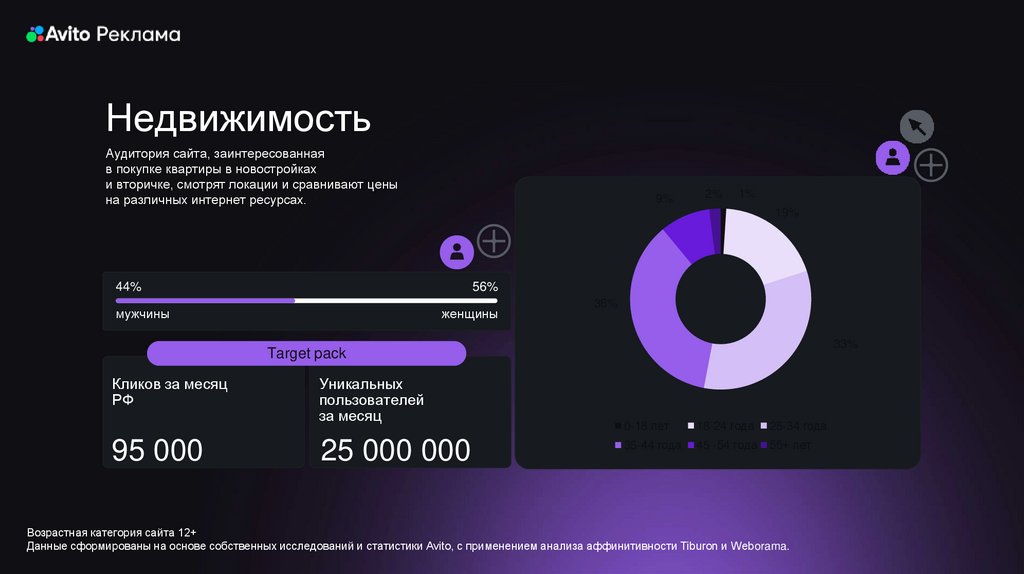 Данные сформированы на основе собственных исследований и статистики Avito, с применением анализа аффинитивности Tiburon и Weborama.