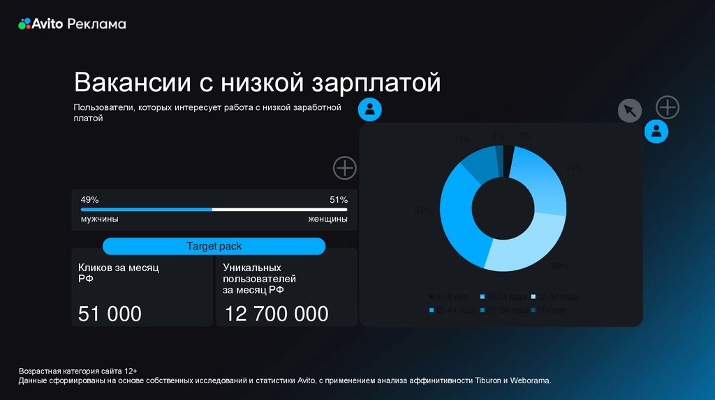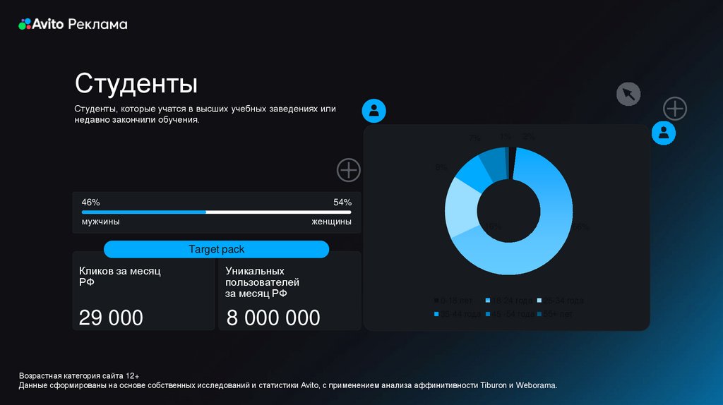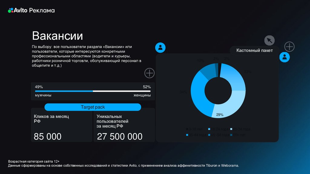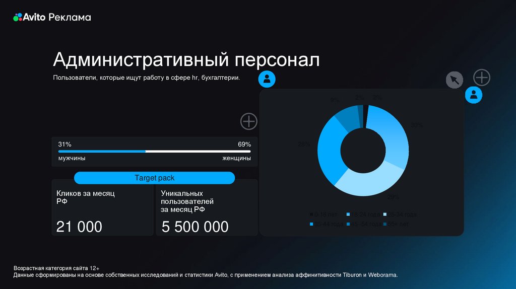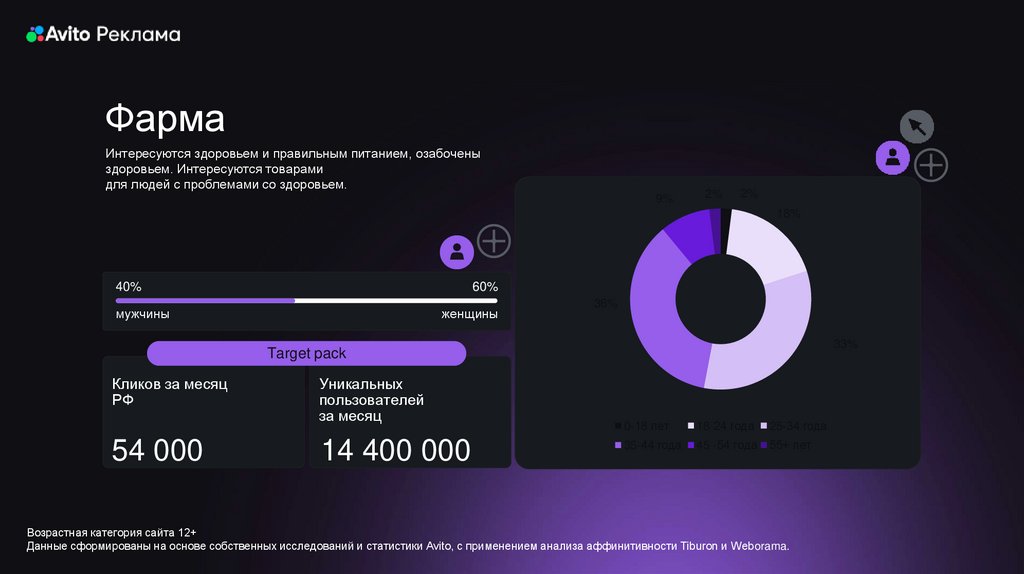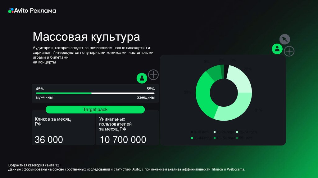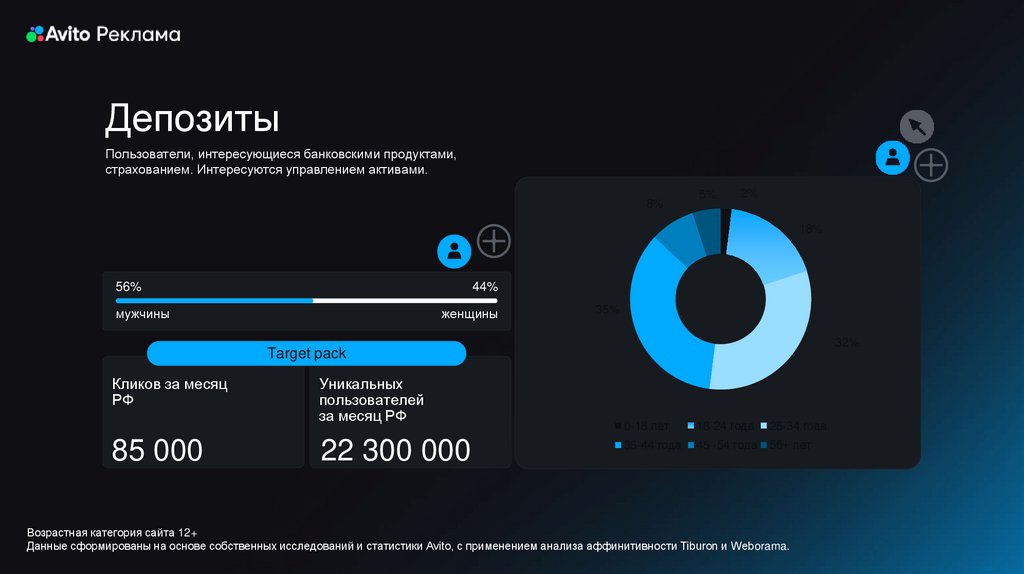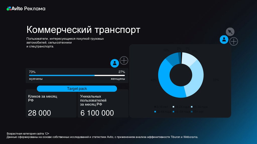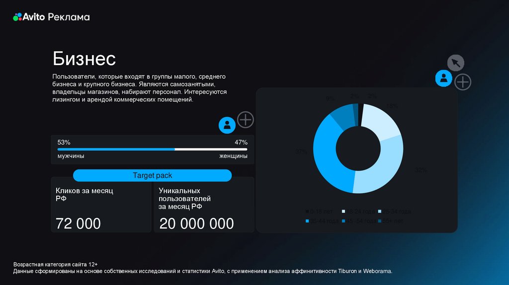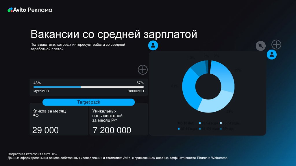 Данные сформированы на основе собственных исследований и статистики Avito, с применением анализа аффинитивности Tiburon и Weborama.
