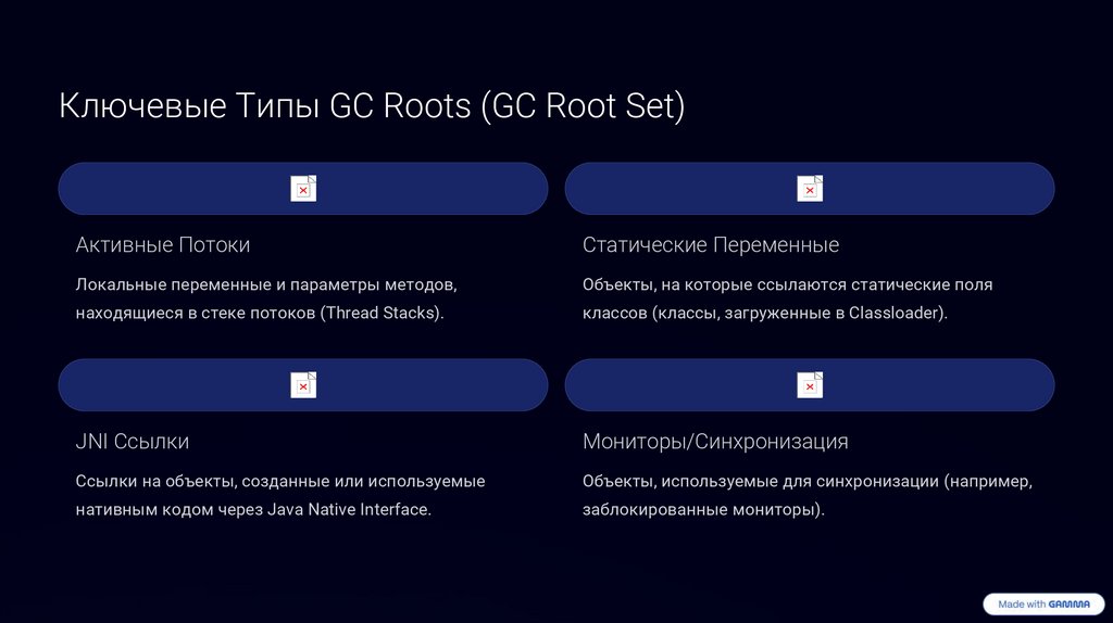 Что такое GC Root?GC Roots — это набор объектов, которые считаются безусловно