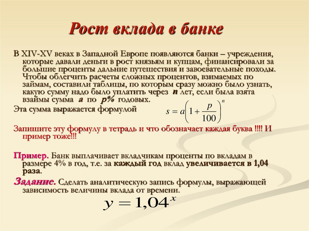 Рост вклада в банкеВ XIV-XV веках в Западной Европе появляются банки – учреждения,