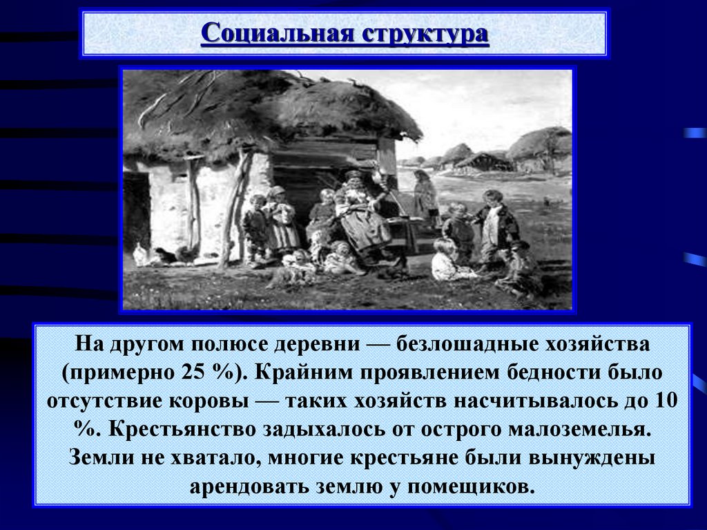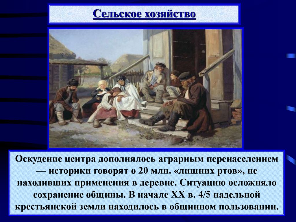 Сельское хозяйствоОскудение центра дополнялось аграрным перенаселением