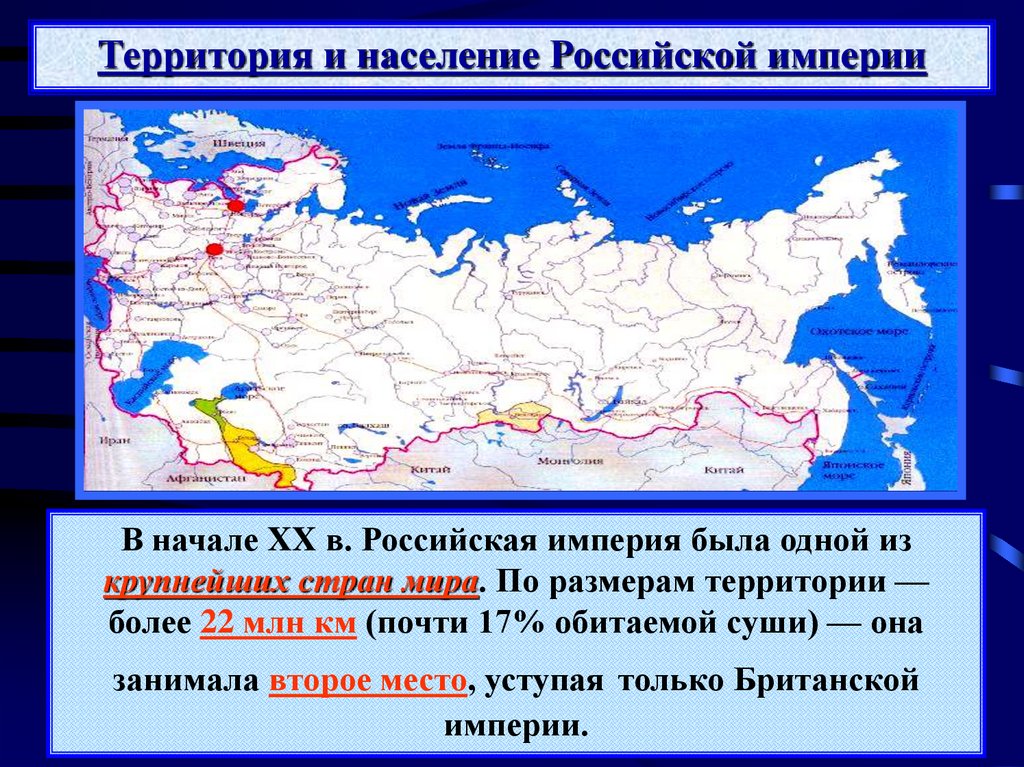 Территория и население Российской империиВ начале XX в. Российская империя была одной из