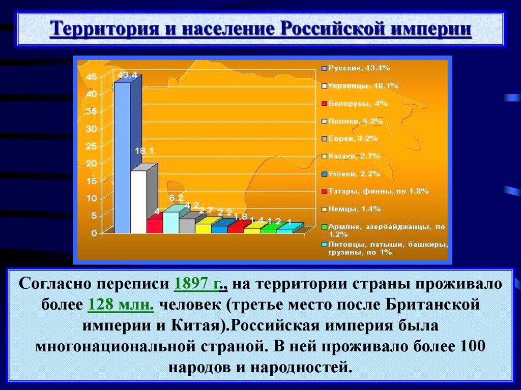 Территория и население Российской империиСогласно переписи 1897 г., на территории страны проживало