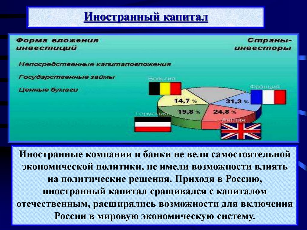 теснить иностранные капиталы, становясь основными